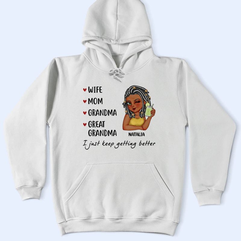 Celebrate the beautiful journey of motherhood with the Mom Grandma Great Grandma I Just Keep Getting Better - Personalized T Shirt! This unique and heartfelt gift is perfect for moms and grandmas who embrace every stage of life with love and wisdom. Personalized with her name, this meaningful and cherished tee is a beautiful reminder of the legacy she has built.